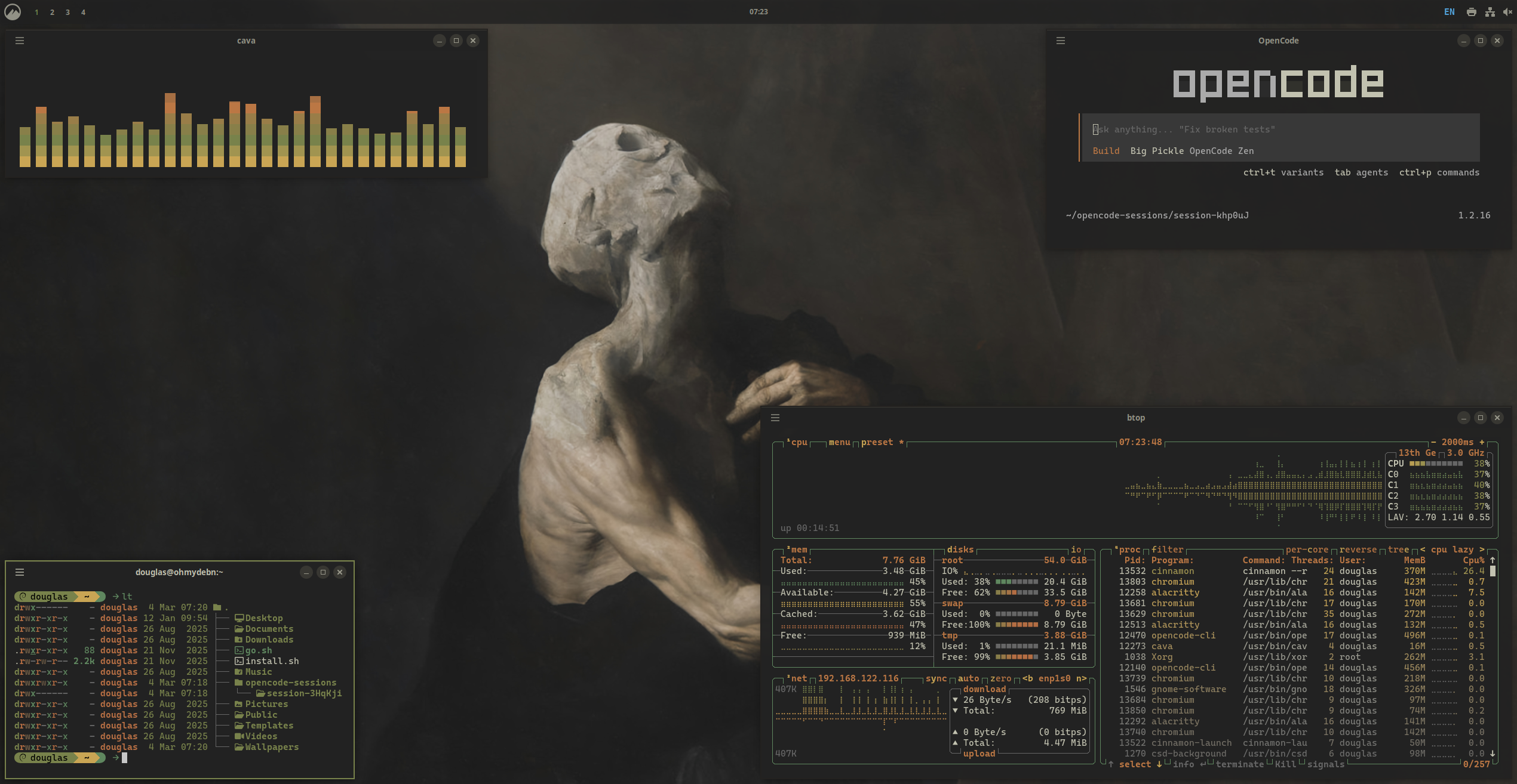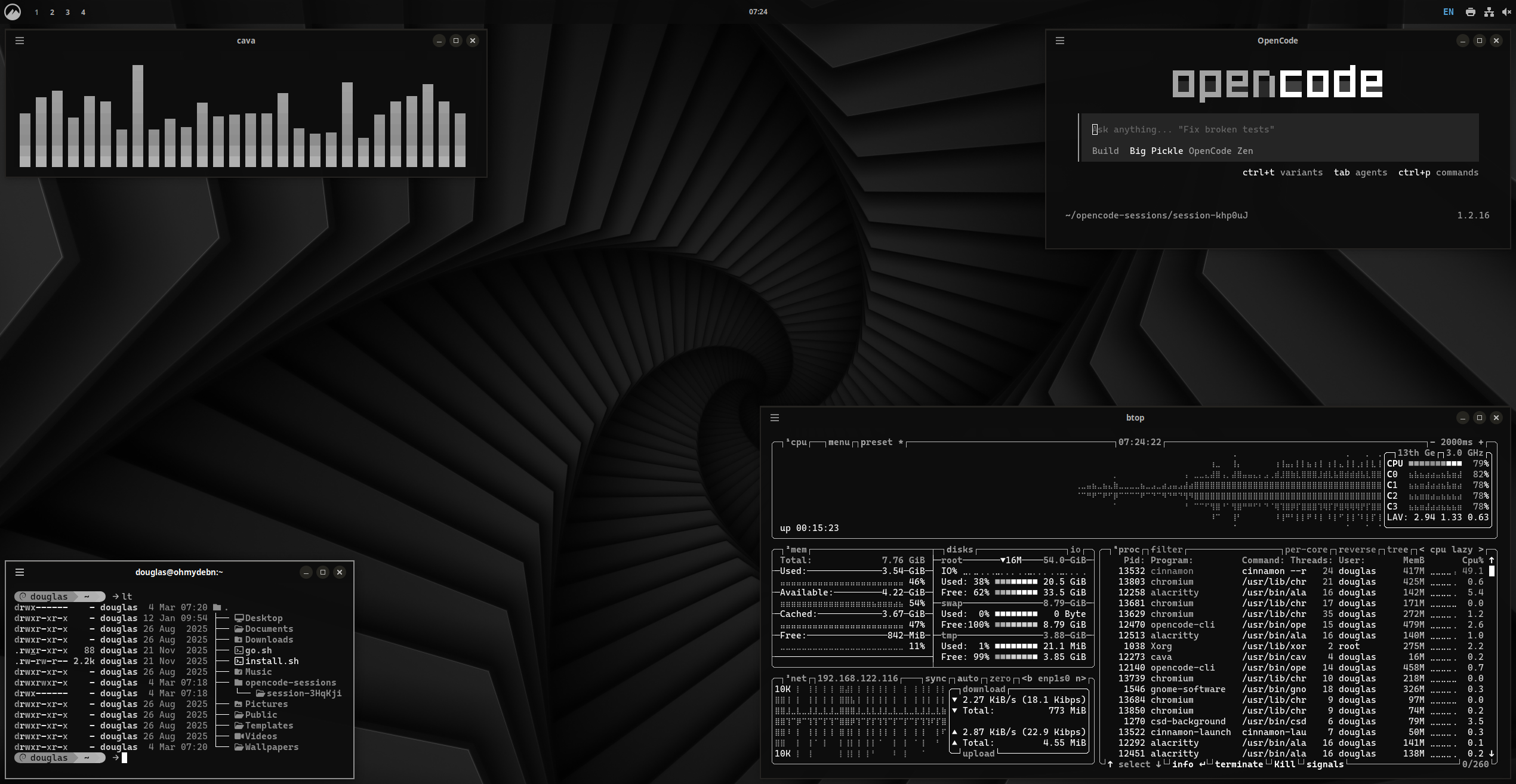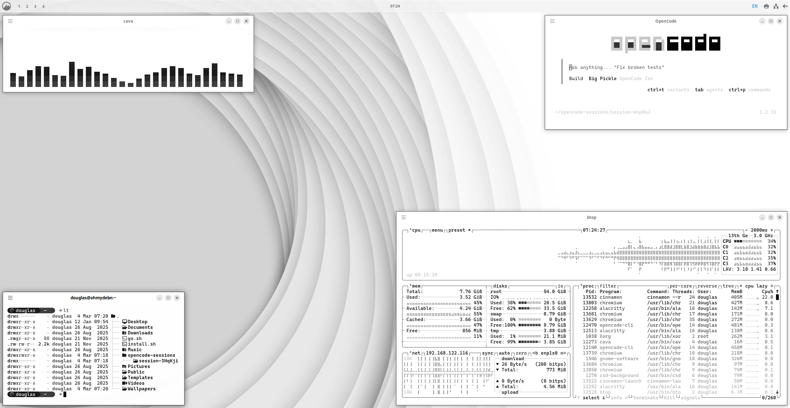 The default OhMyDebn theme is based on a modified Catppuccin Mocha theme.